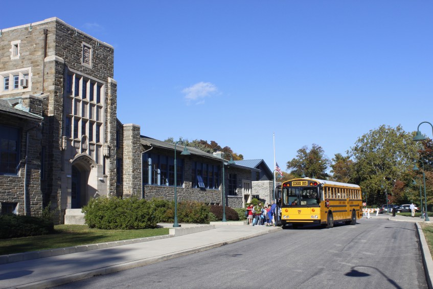 _MG_0765 Published December 12, 2012 at 5184 × 3456 in Back to School Merion Elementary School. Traditional-looking school, blue skies and kids getting on the yellow school bus: this looks like a quintessential scene played out through suburban America